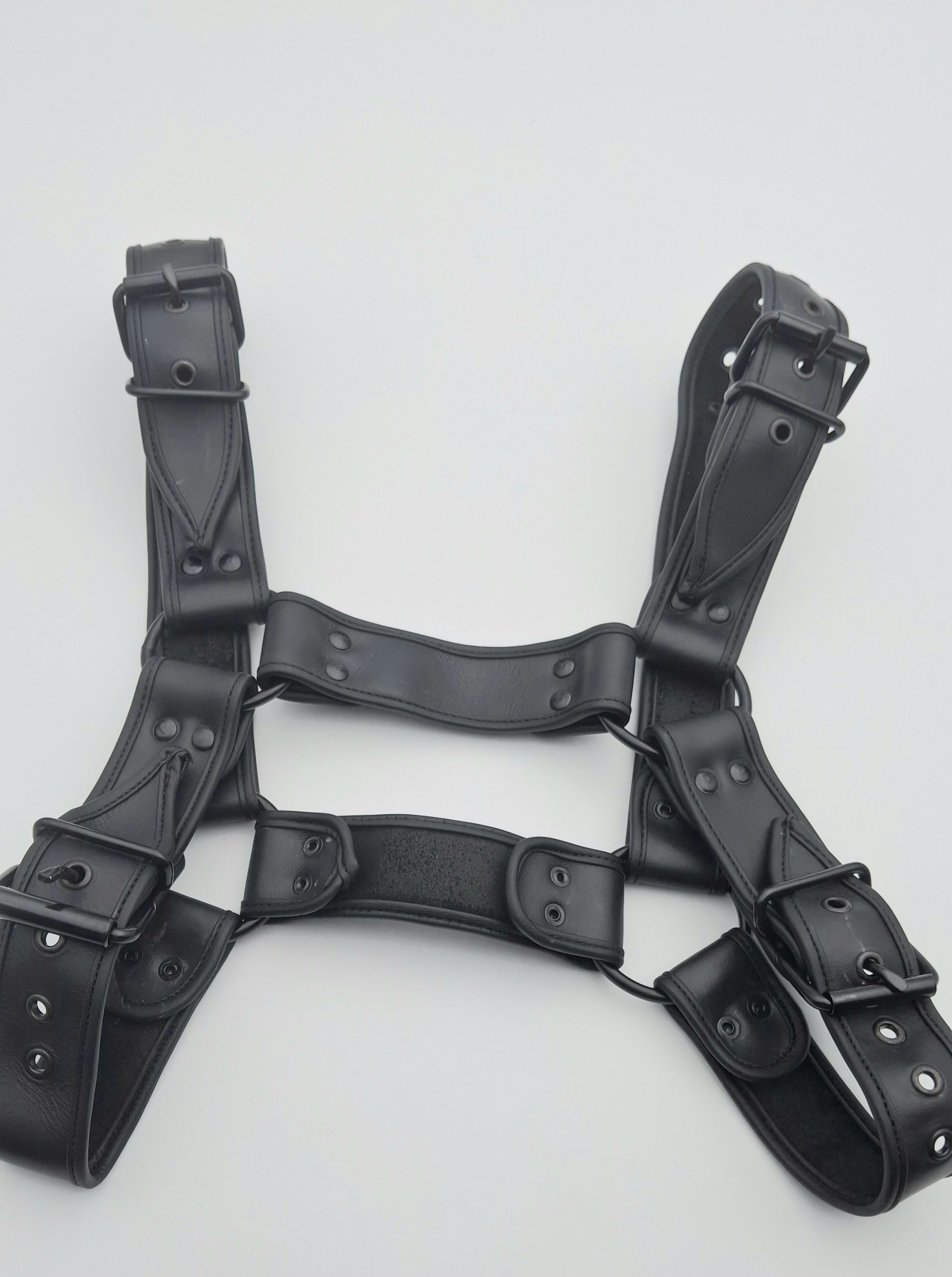 Ce harnais noir G.W.F est l’incarnation du style brut, élégant et affirmé. Entièrement réalisé en cuir véritable, il épouse la silhouette avec caractère grâce à ses multiples réglages. Son design noir intégral le rend polyvalent : à porter seul, sous une veste, ou lors de tes soirées fétichistes.